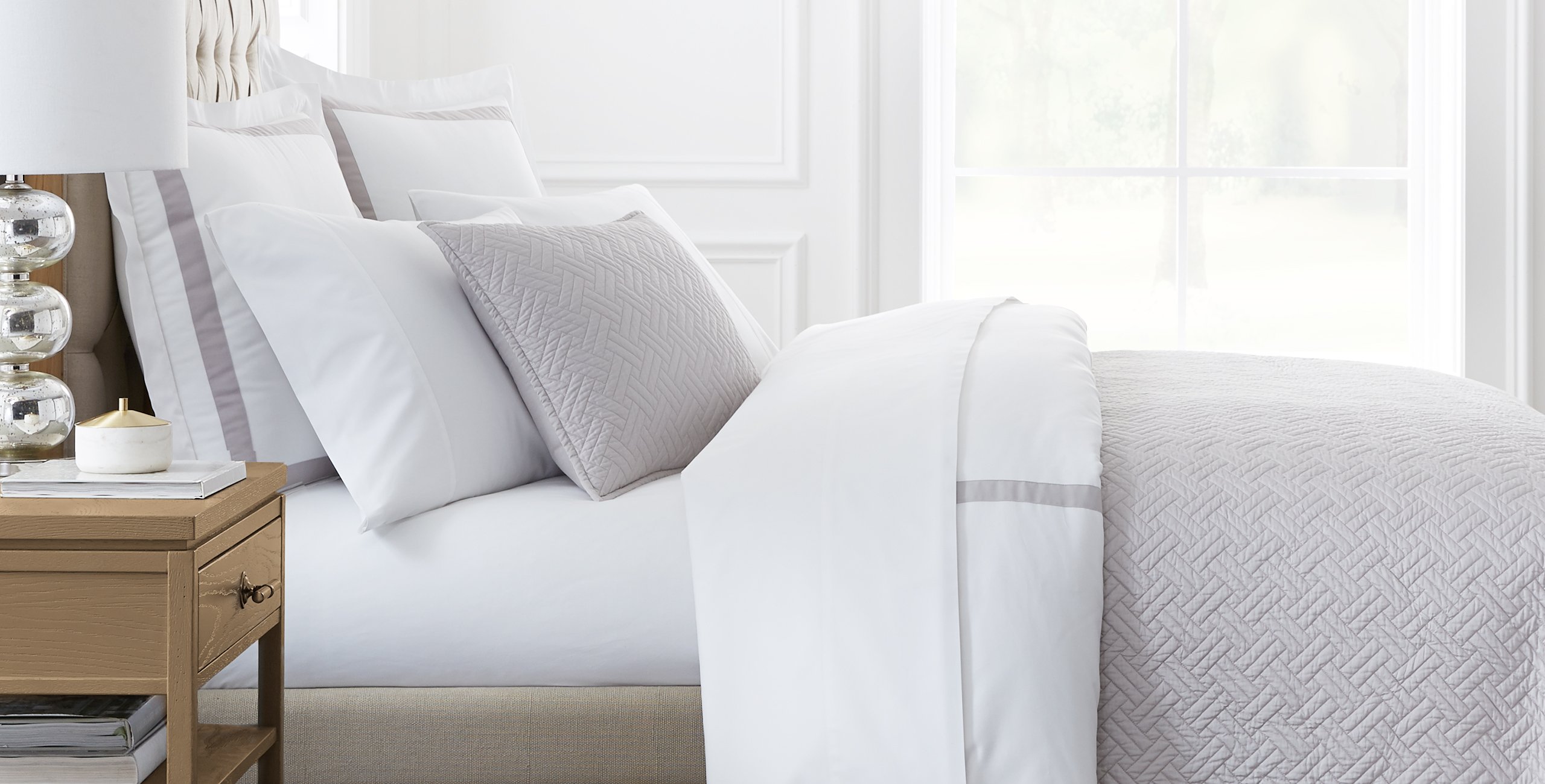 Various bundles available including flat sheets fitted sheets pillowcases or even an added duvet cover. This set also features hand-embroidered decorative eyelets in a choice of four accent colors. States and orders usually arrive within 2 to 10 days.